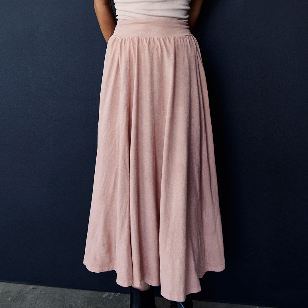 Our Upcycled Food Scraps Collection gathers discarded food scraps including avocado pits, carrot tops, pomegranate peels, used coffee grounds, onions skins, roots, leaves and flowers to make a collection of 100% non-toxic wardrobe essentials.